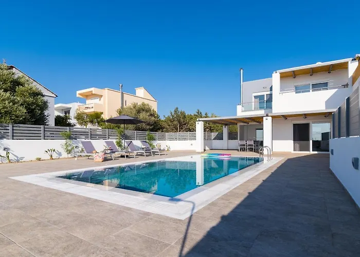 Kuchnia wyposażona jest w urządzenie do parzenia kawy/herbaty, a także kuchenkę mikrofalową, czajnik elektryczny i lodówkę do samodzielnego przygotowywania posiłków. Goście mogą z łatwością dotrzeć na lotnisko Rodos, położone 75 km od 7-pokojowej willi. Opcje rozrywkowe obejmują animacje, a zaplecze rekreacyjne to słoneczny taras i ogród.